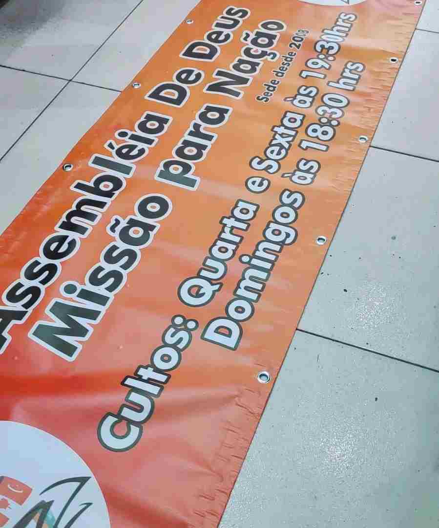Produzida em lona resistente e com impressão de alta qualidade, a faixa acompanha ilhós metálicos estrategicamente posicionados para facilitar a fixação em grades, muros, paredes, estruturas metálicas ou cordas.